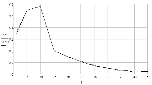 | U2 ’, В | 0,5 | 0,625 | 0,75 | 0,775 | 0,65 | 0,5 | 0,35 | 0,2 | 0,15 | 0,11 | 0,1 |