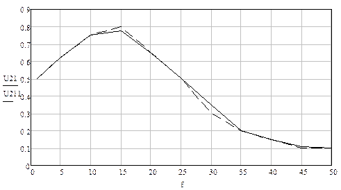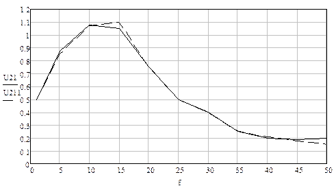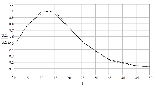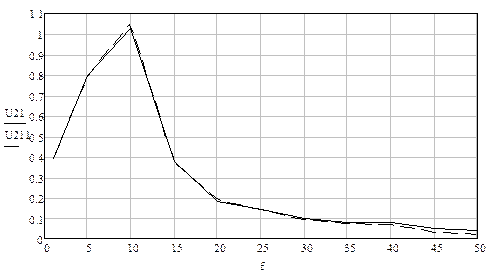 | U2 ’’, В | 0,52 | 0,775 | 0,975 | 1 | 0,75 | 0,525 | 0,37 | 0,23 | 0,18 | 0,14 | 0,125 |