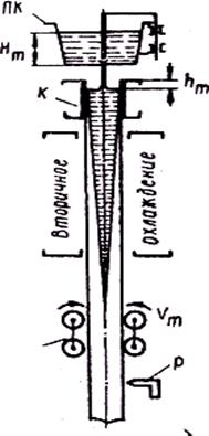 где 1>с — скорость движения слитка; SK — сечение кристаллизатора.