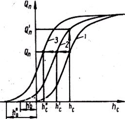 Qn , hС , h'c , h"c— координаты рабочей точки; Qn — значение расхода при разливе стопорной пары и фиксированном положении стопора;