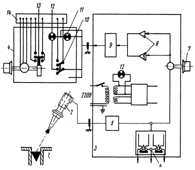 где HT и HЗ соответственно текущий и заданный уровень металла в промежуточном ковше; VT и V3 — скорости тянущей клети; hT и h3 — уровни металла в кристаллизаторе. Считается, что на установке могут быть обеспечены заданные значения HЗ , V3 и h3 .