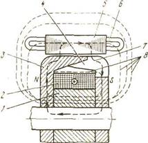 другой полярности S и замыкается через эти полюса опять на втулку 1