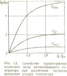 и образуют обычно семейство характеристик, покрывающих весь диапазон изменения частоты вращения от минимальной до максимальной. Характеристика холостого хода, как следует из уравнения э. д. с. генератора, для различных частот вращения выражается семейством характеристик (рис. 13). На рис. 13 ток возбуждения дан в относительных единицах