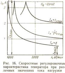 Поэтому характеристики автомобильных генераторов в противоположность общепромышленным генераторам снимаются не при одном значении частоты вращения, а при различных значениях частоты вращения n