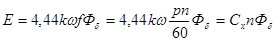 Действующее (эффективное) значение электродвижущей силы, наводимой в обмотке одной фазы генератора при данной величине рабочего магнитного потока Фя .определяется по формуле