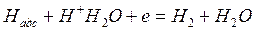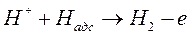 Для металлов с высоким перенапряжением водорода, например Hg и Pb, замедленной стадией, по-видимому будет: