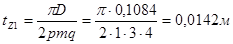 τ=πD/2p=π*0,1084/2*1=0,1703 м