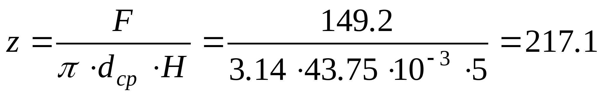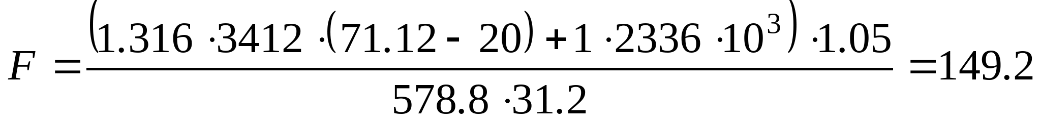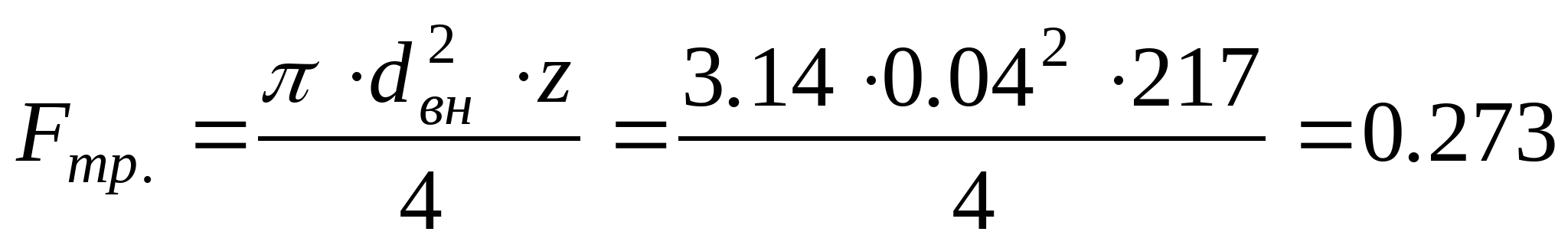 Площадь сечения трубного пространства F = 0.273 м2, условный диаметр трубного пространства dтр = 590 мм, скорость раствора = 0.13 м/с, внутренний диаметр одной трубы d = 40 мм, длинна участка L = 5 м, Re = 3601, = 0.04