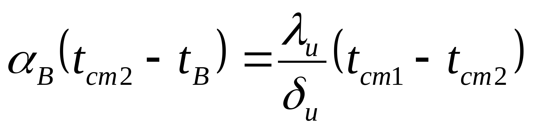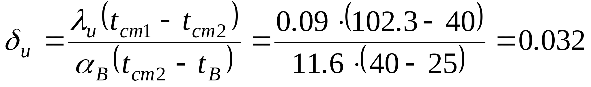 Толщина тепловой изоляции и определяется из равенства удельных тепловых потоков через слой изоляции от поверхности изоляции в окружающую среду ([5]:4.2):