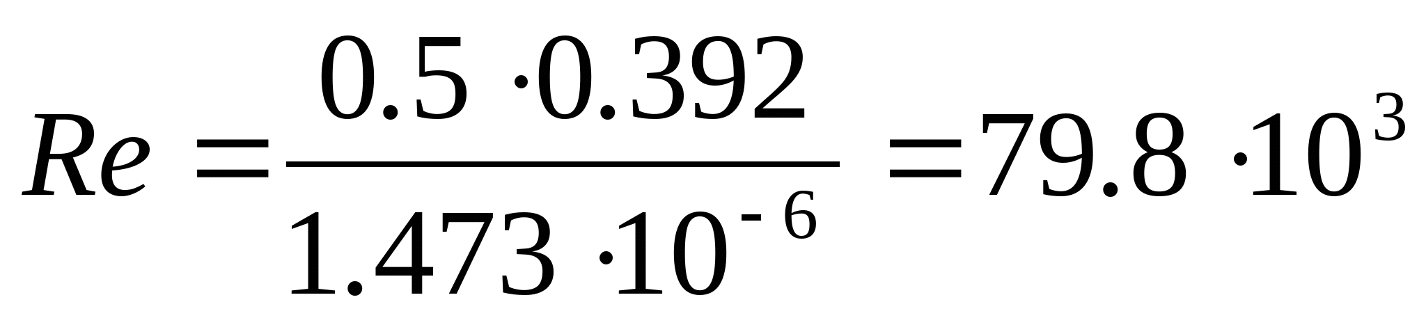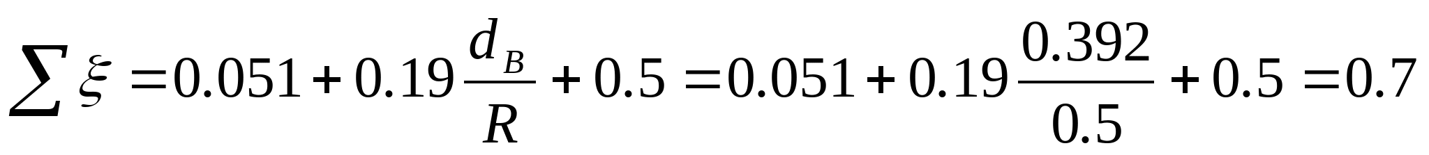 Скорость раствора = 0.3 м/с, внутренний диаметр d = 392 мм, средний радиус поворота колена R = 500 мм, длинна участка L = 1.48 м, Re = 79800, = 0.019.