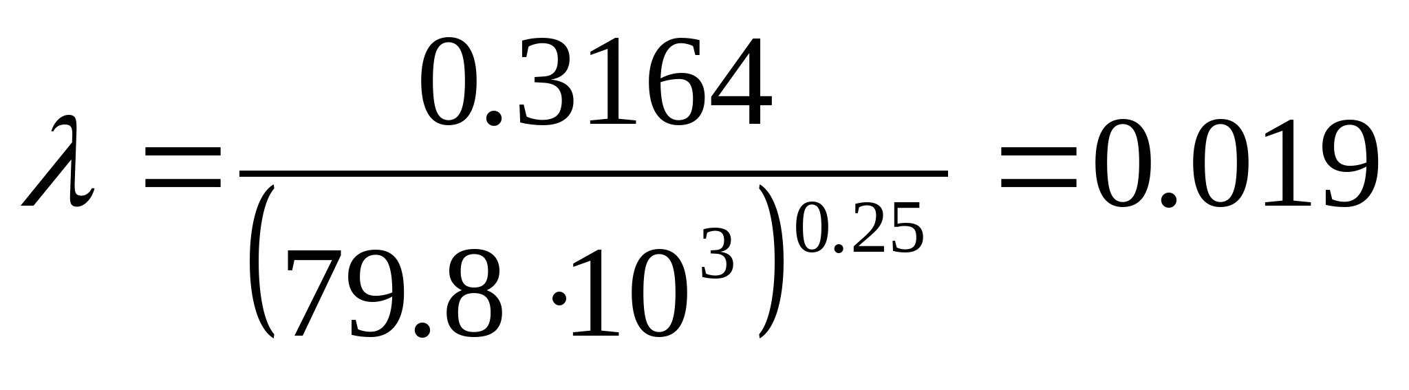 - коэффициент трения, определяется в зависимости от значения критерия Рейнольдса (при Re = 3000 ... 10000 = 0.3164/Re0.25, при Re < 2320 = 64/Re);