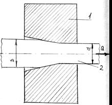Волочением называется особый вид обработки металлов давлением, при котором обрабатываемый металл, обычно в холодном состоянии, протягивается через отверстие волочильной доски - глазок специального инструмента (рис.4). Если глазки выполнены вставными, то они называются фильерами. Сечение отверстия меньше сечения протягиваемой заготовки. Волочением получают проволоку с минимальным диаметром 0,002 мм, прутки диаметром до 100 мм, причем не только круглого сечения, трубы (обычно небольшого диаметра и с тонкой стенкой). Изделия, получаемые волочением, обладают высоким качеством поверхности и точностью размеров поперечного сечения. Если изделию требуется придать в основном эти характеристики, то такой вид обработки называют калибровкой.