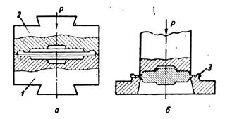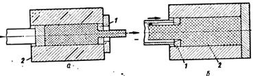 Рис. 5. Схема прессования деталей прямым (а) и обратным (б) способом