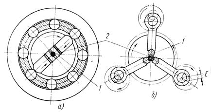 1 – боек; 2 – заготовка; Е – регулируемый эксцентрик.