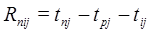i - начальное событие; j - конечное событие; tpi ( j ) - ранний срок свершения события; tni ( j ) - поздний срок свершения события; Ri ( j ) - резерв времени события; t ij - продолжительность работы; Rnij - полный резерв времени работы; Rcij - свободный резерв времени работы.