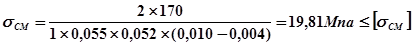 -предел прочности материала при растяжении,