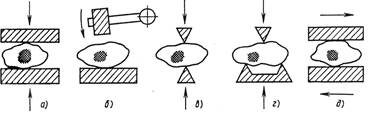 Рис.2 Схемы принципов действия машин для дробления: