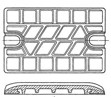 В щековых дробилках применяют гидравлические предохранительные устройства, позволяющие перейти к нормальному режиму работы автоматически, без остановки дробилки. Существуют предохранительные устройства, в которых использован гидропневматический аккумулятор. При перегрузке жидкость перетекает из цилиндра в аккумулятор через отверстие с относительно большим сечением, что обеспечивает быстрое срабатывание устройства. Обратно в цилиндр масло проходит через канал с уменьшенным проходным сечением, постепенно восстанавливая первоначальное положение. Для регулирования ширины выходной щели в щековых дробилках применяют обычно клиновой механизм. Дробящие плиты 10 и 11 являются основными рабочими органами щековых дробилок. Они сменные, быстроизнашивающиеся. Расход металла на дробящие плиты составляет около одной трети всех расходов на дробление. Плиты щековых дробилок изготовляют из высокомарганцовистой стали, обладающей высокой износостойкостью. Конструкция дробящей плиты определяется ее продольным и поперечным профилями (рис. 4). Рабочую часть плиты делают рифленой и редко для первичного (грубого) дробления - гладкой. От продольного профиля дробящих плит зависит угол захвата, величина криволинейной или параллельной зоны и другие параметры камеры дробления, влияющие на процесс дробления. Рифления трапецеидальной формы (тип I) применяют для предварительного дробления в дробилках с приемным отверстием шириной 250 и 400 мм; рифления треугольной формы (тип II) используют для предварительного дробления в дробилках с приемным отверстием шириной 500 мм и более и для окончательного дробления в дробилках с приемным отверстием шириной 250, 400 и 600 мм. Шаг t и высоту h рифлений (м) для обоих профилей в зависимости от ширины b выходной щели рекомендуется определять по выражению t=2h = b.
