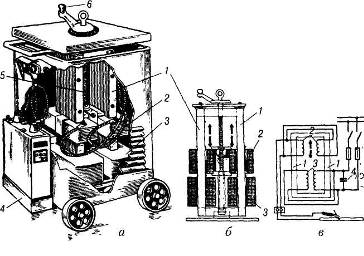 а — загальний вигляд; б — схема регулювання зварювального струму,