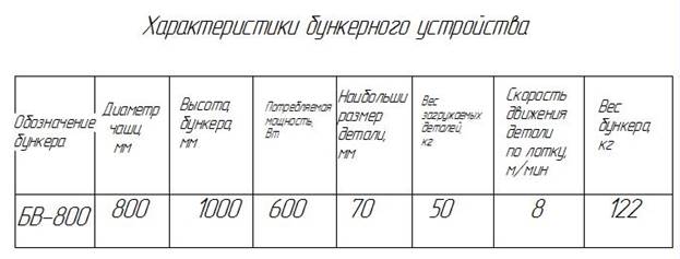 Учитывая размеры заготовки, выберем бункер БВ 800 (рис.5) Чаша бункера установлена на несущем диске , к которому посредством скоб крепятся или радиально расположенных стержня квадратного или круглого сечения. Внизу к плите на скобах укреплены такие же торсионные стержни. Торсионы и соединяются вместе посредством шатунов. Возбуждающие импульсы от электромагнитного вибратора, передаются на торсионы , которые скручиваясь на определенный угол, позволяют совершать чаше необходимые колебания.
