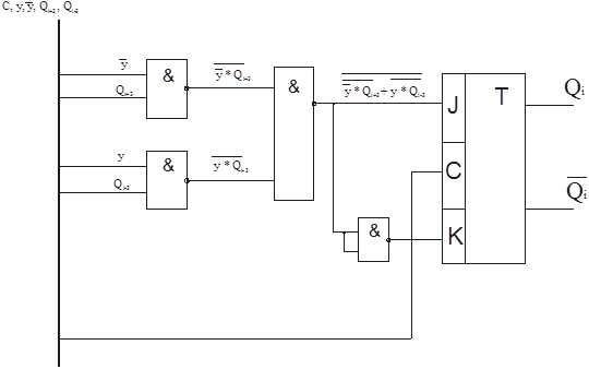 Чтобы получить выражение, описывающее логику формирования сигналов на входе триггера, используем уравнение: Ji = y · Qi