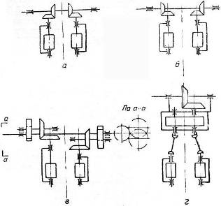 Рис. 6. Различные схемы передач вертикальным валкам универсальных станов.