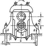 Момент, опрокидывающий шестеренную клеть, стремится оторвать шестеренную клеть от фундамента или плитовин, т.е. растягивает фундаментные болты.