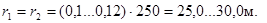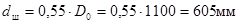 Рекомендуемая глубина ручья при отношении сторон раската Н/В£1,3 [1, стр. 33]