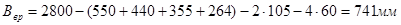 Ширина по буртам определена по разности между длинной бочки валков и шириной буртов [2, стр. 36]: