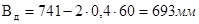 Глубина ручья у первого калибра принята, как указывалось выше, 60 мм, следовательно,