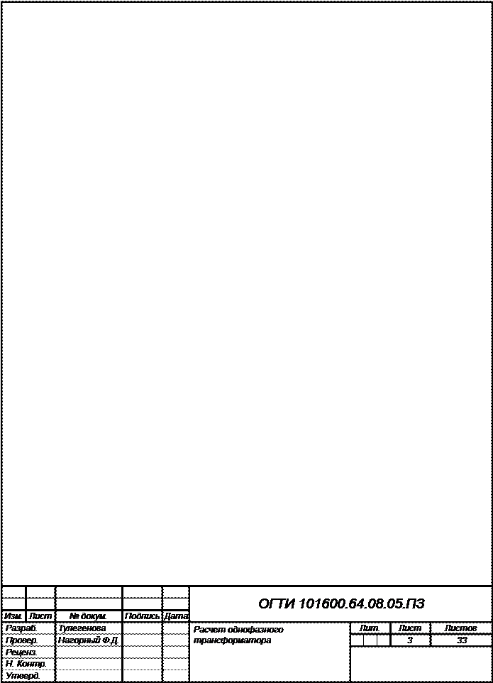 Курсовая работа: Курсовая работа: Расчет однофазного трансформатора 2