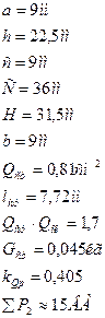 Расчетные условия и числовые значение величин