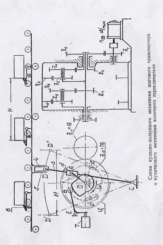 Механизм шагового транспортера автоматической линии вычерчен в масштабе