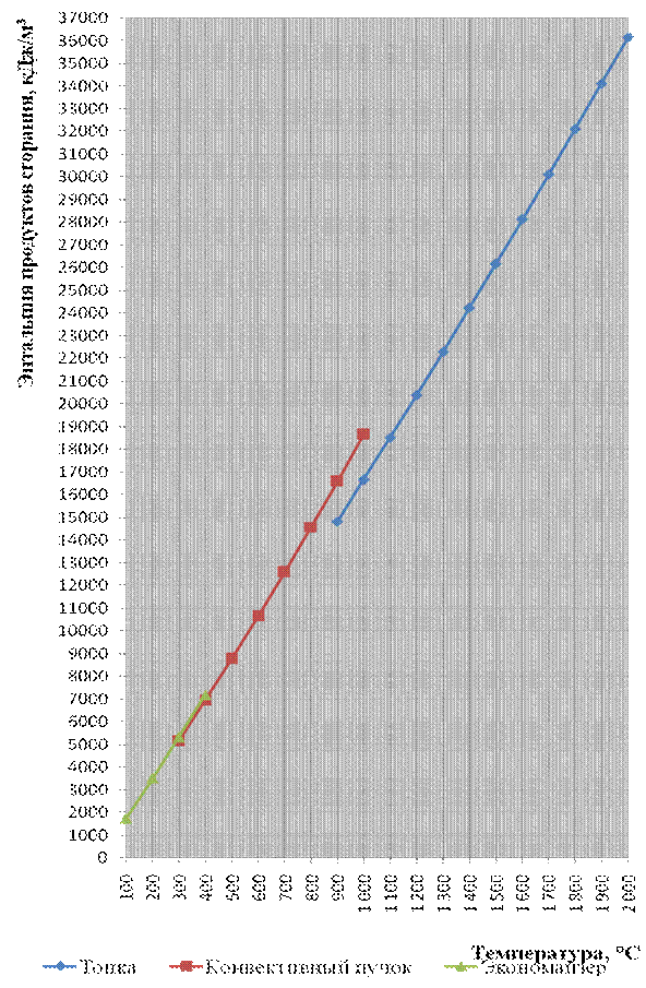 7.2 Расчет энтальпий воздуха и продуктов сгорания