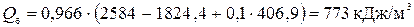 Примечание: Количество теплоты, воспринятое воздухоподогревателем, не учитывается исходя из особенностей его работы: воздухоподогреватель увеличивает энтальпию газов в топочной камере и за счет этого, увеличивает тепловосприятие поверхностей нагрева котла. Вклад воздухоподогревателя в тепловой баланс учтен тепловосприятием поверхностей нагрева котла.