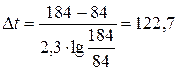 где Δt б , Δt м - большая и меньшая разности температур между продуктами сгорания и водой в экономайзере, °С: Δt б = 355-171 =184 °С; Δt м = 184 -100= 84 °С