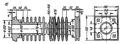 [7, рис. IV.13, С.124]: а - ребристая труба; б - соединение труб
