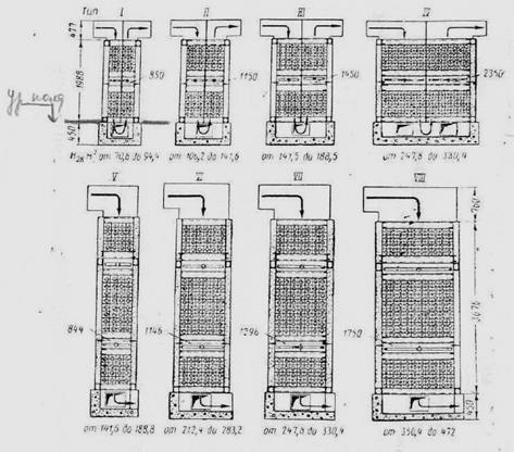 Рис. 5. Типоразмеры блочных экономайзеров системы ВТИ