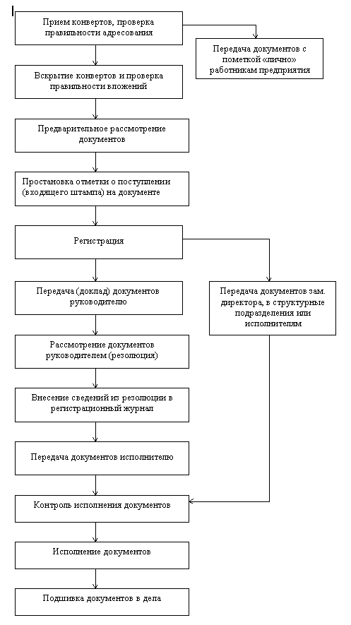Входящие документы (т.е. вся корреспонденция, поступающая в организацию по почте, телеграфом, факсом и т.д.) должны пройти экспедиционную обработку (Приложение 2). Сотрудник экспедиции прежде все проверяет правильность доставки корреспонденции, ее сохранность. Вскрываются все конверты, кроме лично корреспонденции (с пометкой «лично»). Конверты уничтожаются, за исключением тех случаев, когда на конверте имеются пометки «конфиденциально» или «срочно», а также если адрес отправителя, даты отправки и поступления проставлены только на конверте. Обработка документов должна осуществляться в день их поступления. Затем входящие документы сортируются на регистрируемые и нерегистрируемые. Организация сама определяет перечень нерегистрируемых документов (поздравительные письма, каталоги и т.д.).