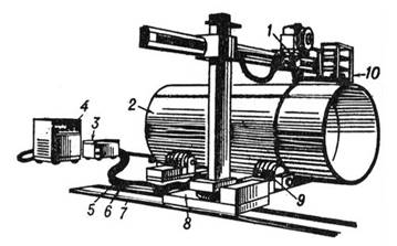Для осуществления процесса сварки недостаточно одного автомата, требуется еще ряд дополнительных устройств, образующих шесте с одним или несколькими дуговыми автоматами комплектую установку для автоматической дуговой сварки. Эти устройства и механизмы могут быть весьма разнообразны, в зависимости от конфигурации и размеров изделия, характера производства и т. д.