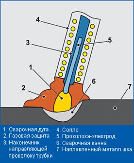 Возможность наблюдения при полуавтоматической сварке за направлением электрода в разделку, особенно при сварке с его поперечными колебаниями, а также за образованием шва - основные преимущества сварки порошковыми проволоками. Изменение состава наполнителя сердечника порошковой проволоки позволяет воздействовать на химический состав шва и технологические характеристики дуги.