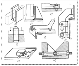 Прижимы и зажимы обеспечивают правильное положение и направление прижимного усилия для закрепления деталей без сдвигов относительно установочных баз.