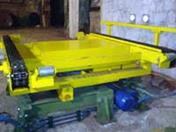 3. Грузотянущий конвейер, у которого каретки, постоянно прикрепленные к тяговому элементу, специальными крюками (захватами) цепляются за штанги напольных тележек и передвигают последние по полу помещения.