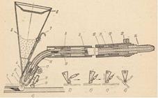 При проведении комплексной механизации технологического процесса работу конвейеров, подающих груз непрерывно, необходимо согласовать с работой машин периодического действия. В этом случае для накапливания груза, подаваемого конвейером, используют бункера (сосуды раз личной формы). Вместимость бункеров выбирают такой, чтобы мож но было компенсировать неравномерность в подаче и расходе груза. Конструктивно бункер представляет комбинацию двух геометрических тел: верхнего — призматического или цилиндрическо го и нижнего — суживающегося книзу к выпускному отверстию в виде конуса или пирамиды. Бункера изготовляют из листовой ста ли, дерева, бетона. Форма их стенок и размеры отверстия истечения должны обеспечить бесперебойную разгрузку, не допуская создания сводообразования груза в бункере. Иногда в бункерах для улучшения истечения материала применяют специальные шуровочные устройства или вибраторы.