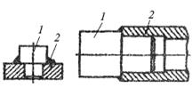 1 – палец; 2 – плоская деталь; б: 1 – палец; 2 – труба