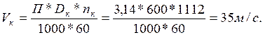Определяем частоту вращения принятой окружной скорости: