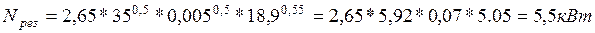 N = Cn×V з ×t×s×d=1.3×20×0.015×2.5×55=1.4 КВт .