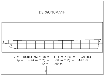 В данном разделе приведены результаты расчетов посадки и остойчивости поврежденного судна со следующими координатами повреждения: Хн=40.00 м; Хк=20.00 м. Поврежденный отсек принят как помещение, занятое генеральным грузом (студенты навалом) с коэффициентом проницаемости 0.60.
