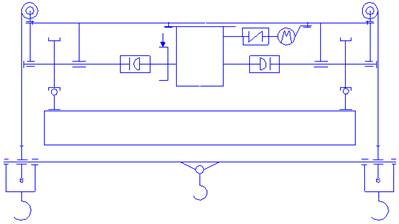 Рис.1.Схема тележки с механизмом подъёма груза.