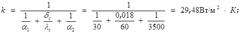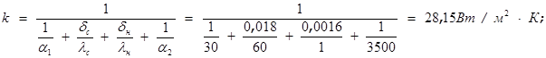 1. Коэффициент теплопередачи для плоской стенки без накипи:
